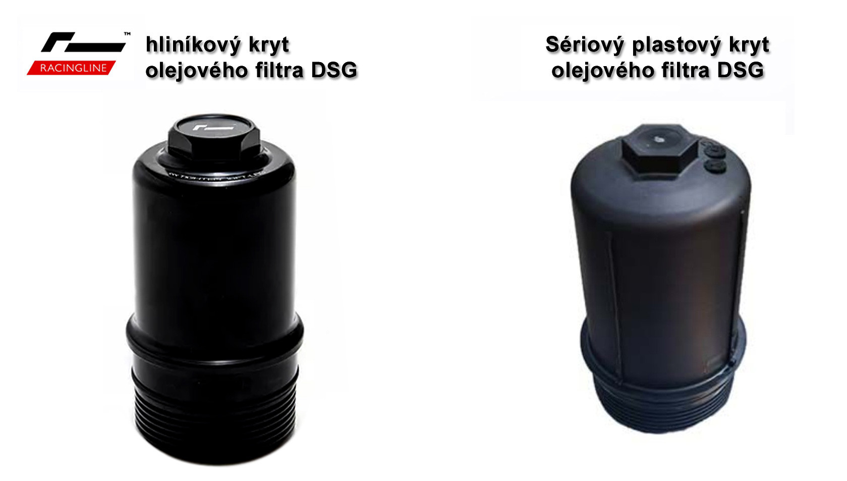 Racingline Performance hliníkový kryt olejového filtra automatickej 2-spojkovej 7-stupňovej prevodovky DSG DQ381 a DQ500 predstavuje plnohodnotnú priamu náhradu nevzhľadného sériového plastového krytu filtra prevodového oleja a je výrazným designovým aj funkčným obohatením motorového priestoru Vášho vozidla.