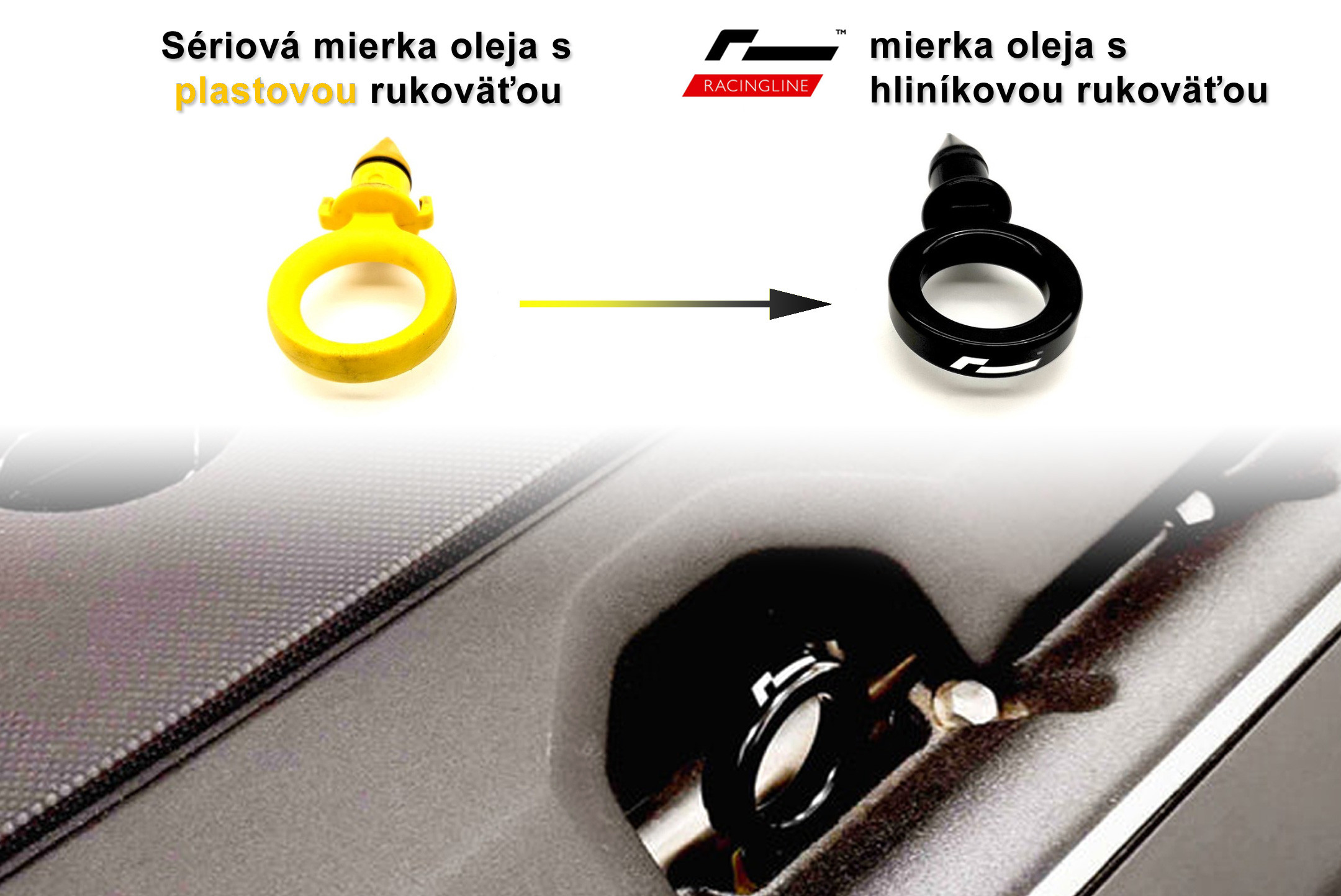 Racingline Performance mierka oleja je funkčným a zároveň vysoko estetickým riešením tohto nepríjemného problému. Nahrádza lacný plastový originál, pričom použitými materiálmi a kvalitou prevedenia významne obohacuje vzhľad motorového priestoru. Predstavuje navyše oveľa pevnejšiu a kvalitnejšiu náhradu, pri ktorej už nehrozí, že by sa Vám pri kontrole hladiny oleja v motore odtrhla rukovať mierky oleja.
