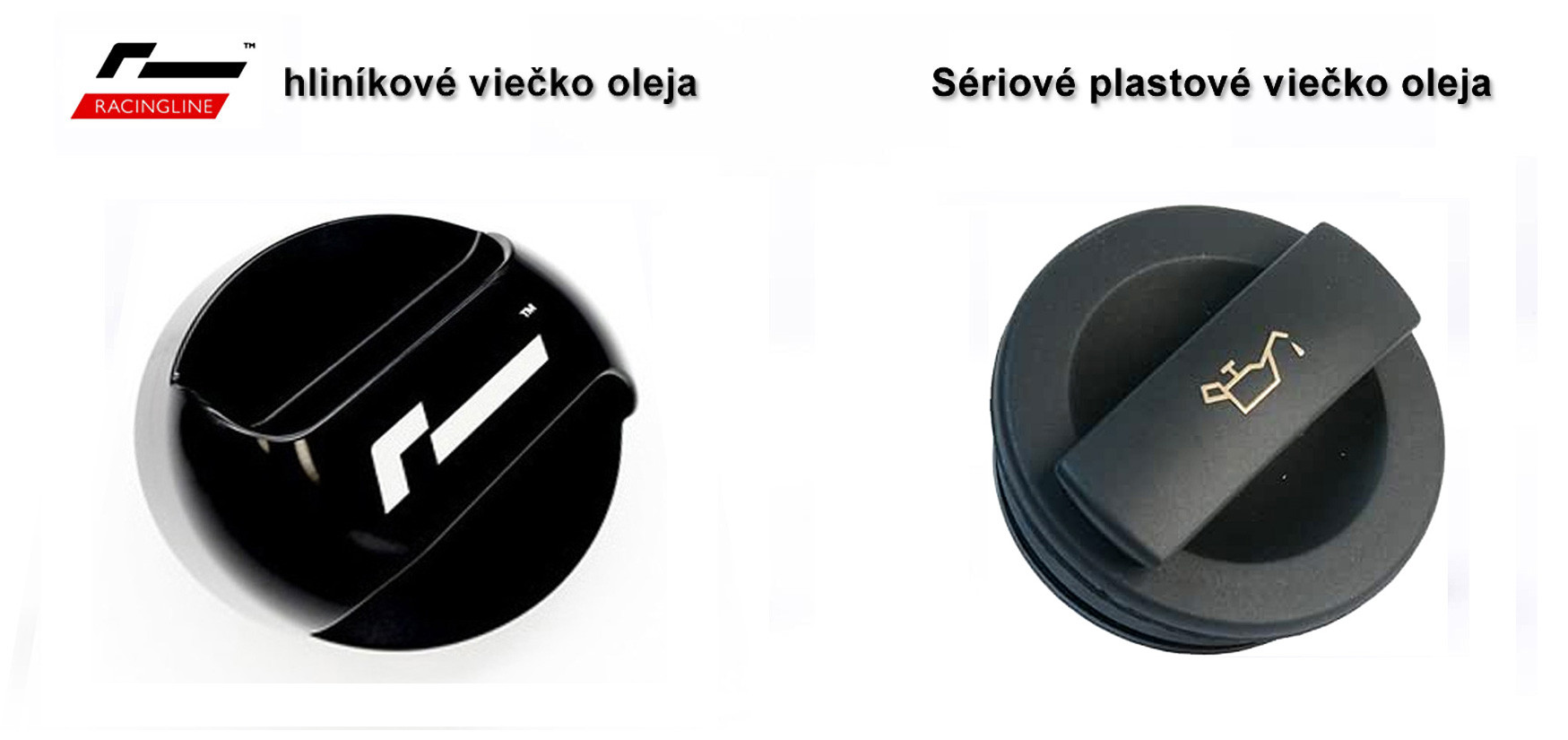 Montáž už ani nemôže byť jednoduchšia. Stačí len odskrutkovať sériové plastové viečko oleja a nahradiť ho prémiovým hliníkovým od Racingline Performance. Hotovo!