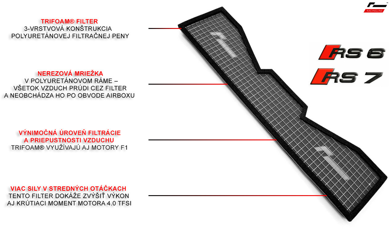 Racingline Performance penová športová vložka vzduchového filtra pre motory 4.0 TFSI EA825 AUDI RS6, RS7 C8