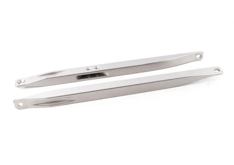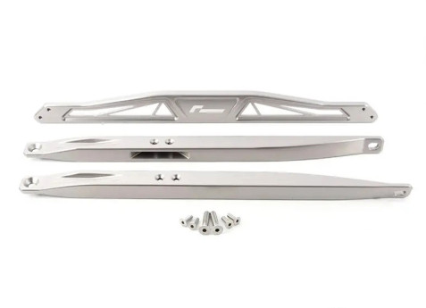 Racingline Performance predná výstuha karosérie je vyrobená pokročilým 5-osým CNC frézovaním z pevného kusu ľahkej a veľmi tuhej zliatiny konštrukčného leteckého hliníka 6061-T6. Po vyfŕézovaní všetkých častí je výstuha ručne preleštená a následne eloxovaná do mimoriadne atraktívnej striebornej povrchovej úpravy “Titanium Silver“, ktorá aj vďaka viditeľnému bielemu logu Racingline Performance dodá motorovému priestoru Vášho vozidla skutočne príťažlivý a prémiový vzhľad.