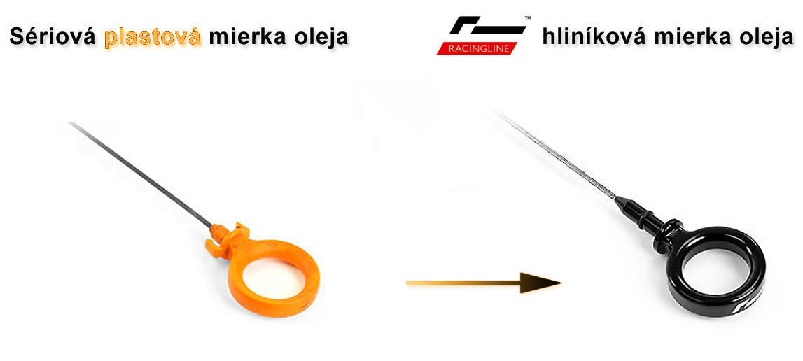 Montáž už ani nemôže byť jednoduchšia. Stačí len vybrať sériovú mierku oleja s plastovou rukoväťou a nahradiť ju prémiovou hliníkovou od Racingline Performance.